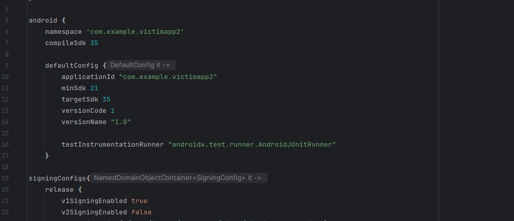 Let us take an example of an Android app signed by v1 signature scheme named victimApp2