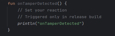 Real-time Threat Response: When RASP detects a threat, it triggers a callback function—giving developers full control over how their app responds. Once integrated, you can implement callbacks such as