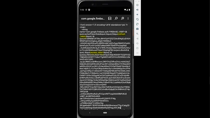 <figure><img src="https://1548930415-files.gitbook.io/~/files/v0/b/gitbook-x-prod.appspot.com/o/spaces%2FNjTFXsqCLQ3RU2oA2uHC%2Fuploads%2FZhUP71vNwmiNbCi2N3up%2Fimage.png?alt=media&#x26;token=75956b25-0e4f-420f-b37e-a48b3f387081" alt=""><figcaption><p>The content of Firebase file com.google.firebase.auth.api.Store.{…}.xml</p></figcaption></figure>