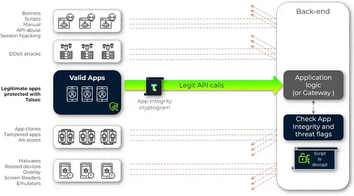 The idea behind this technology is not just to protect APIs but to let your backend know that RASP controls were overcome or turned off by attackers. So gateway can easily **block the session if the App integrity is compromised**, and backends only process API calls if RASP controls check out.