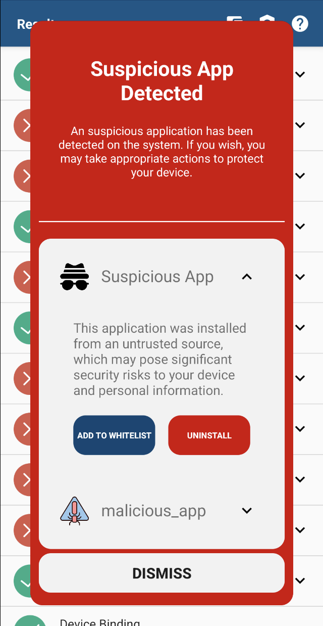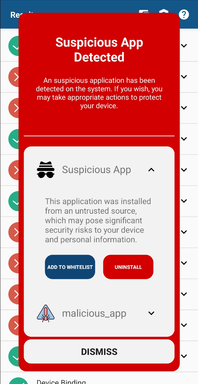 After the scan is complete, freeRASP provides a result - a list of suspicious applications.
